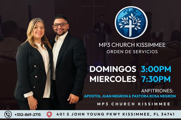 ¡Bienvenidos/as a MP3 CHURCH KISSIMMEE en Florida! Estamos muy emocionados con nuestra Apertura, este mes de Enero del 2026. "Id y hacer Discípulos" es la motivación que tenemos como norte, para alcanzar todas aquellas vidas que necesitan de Jesús, quién es nuestro Salvador.