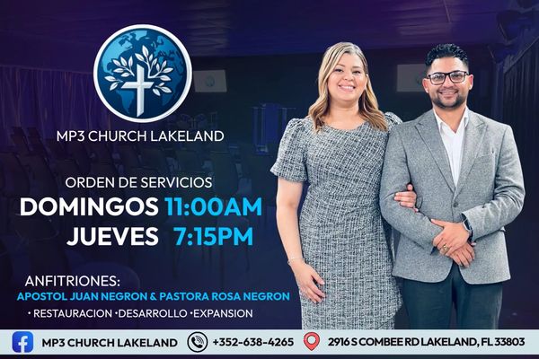 ¡Bienvenidos/as a MP3 CHURCH LAKELAND en Florida! Estamos muy emocionados con nuestra re-apertura, este mes de Noviembre del 2024. "Id y hacer Discípulos" es la motivación que tenemos como norte, para alcanzar todas aquellas vidas que necesitan de Jesús, quién es nuestro Salvador.